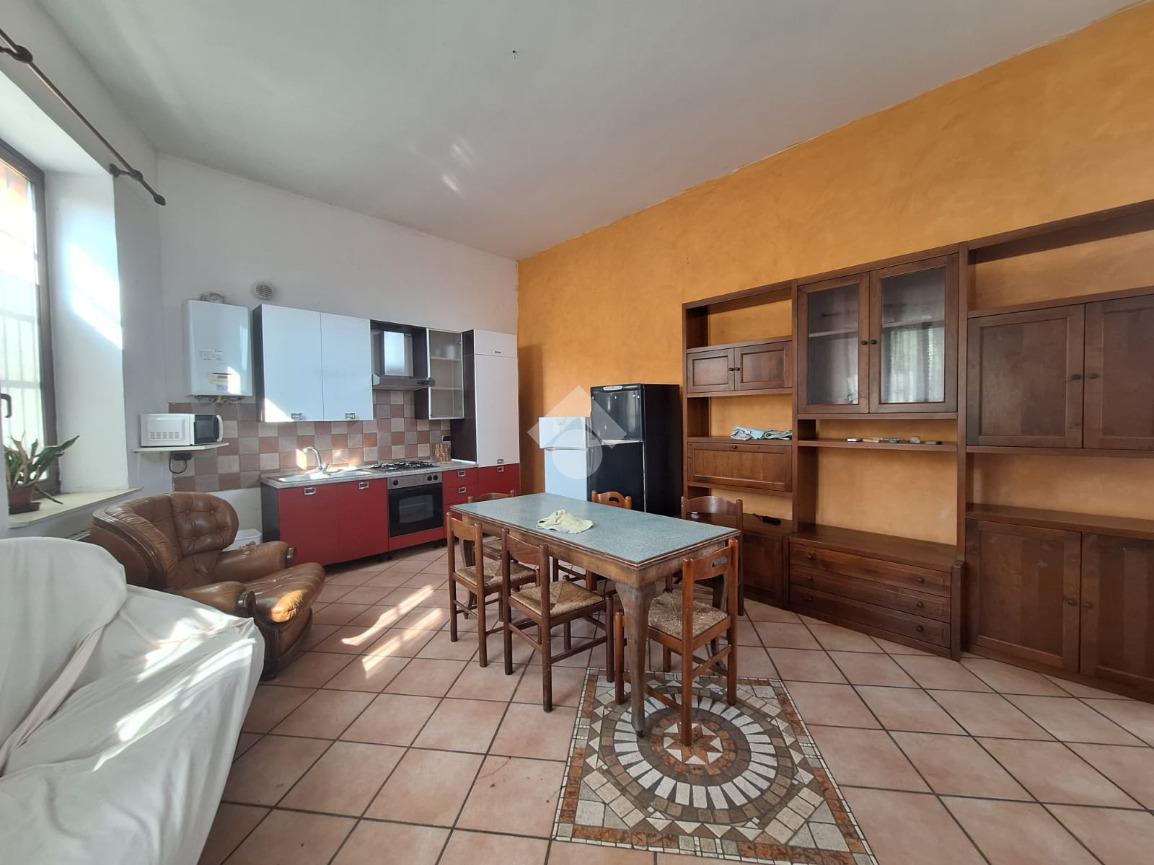 L'ingresso è nel soggiorno con angolo cottura, disimpegno dove troviamo i doppi servizi (rispettivamente con doccia e vasca), spaziosa camera matrimoniale e altro locale attualmente adibito a cameretta.
