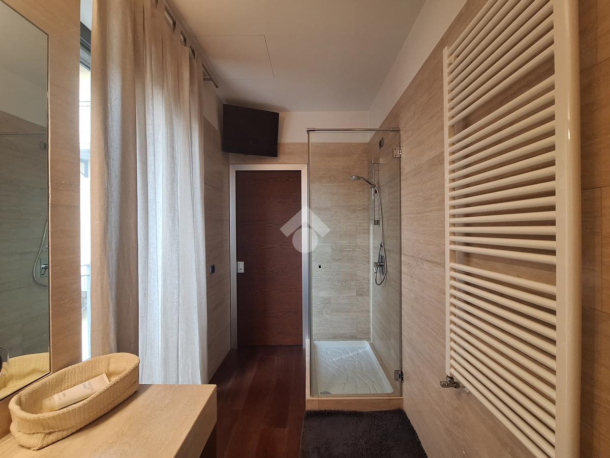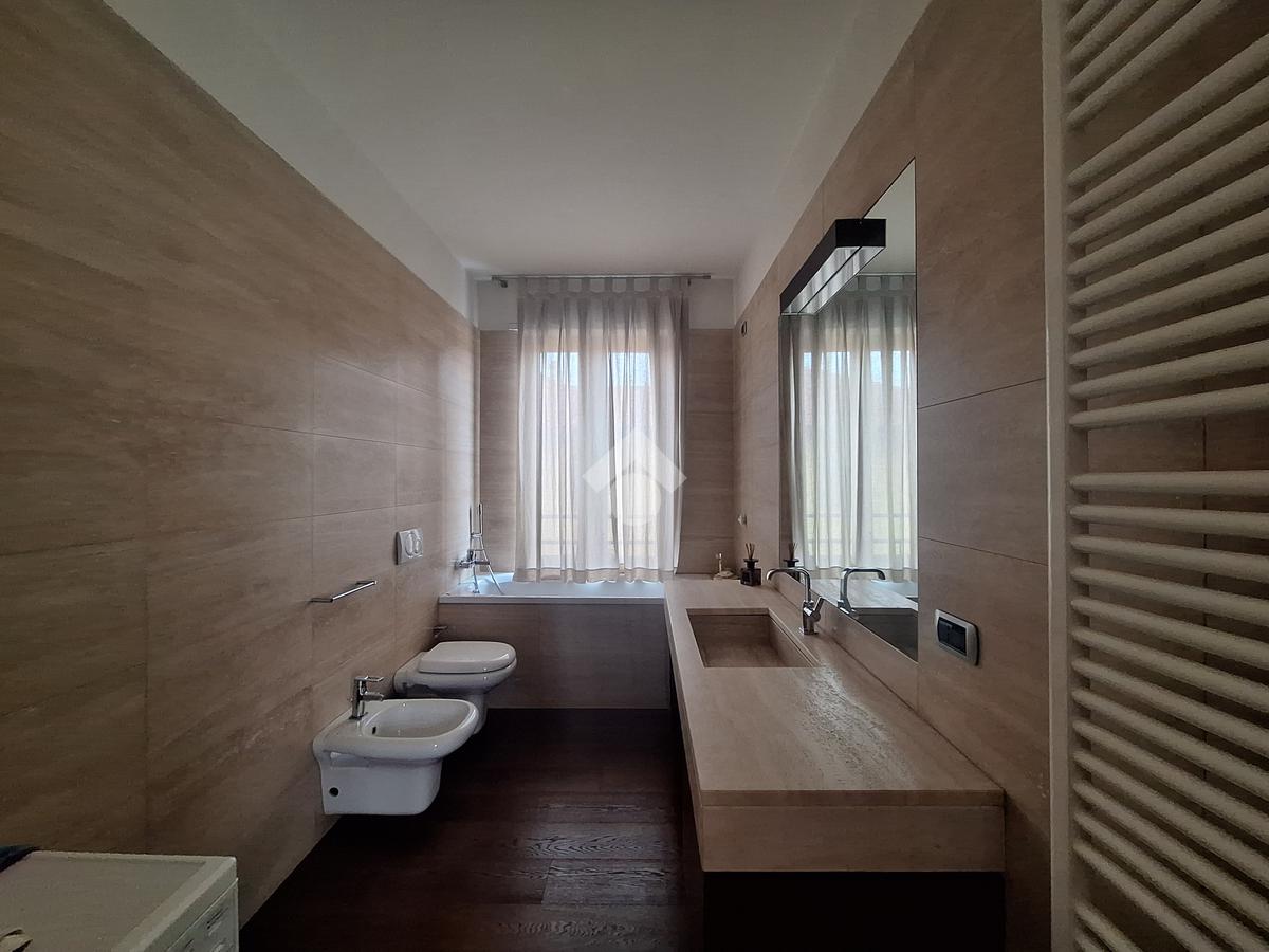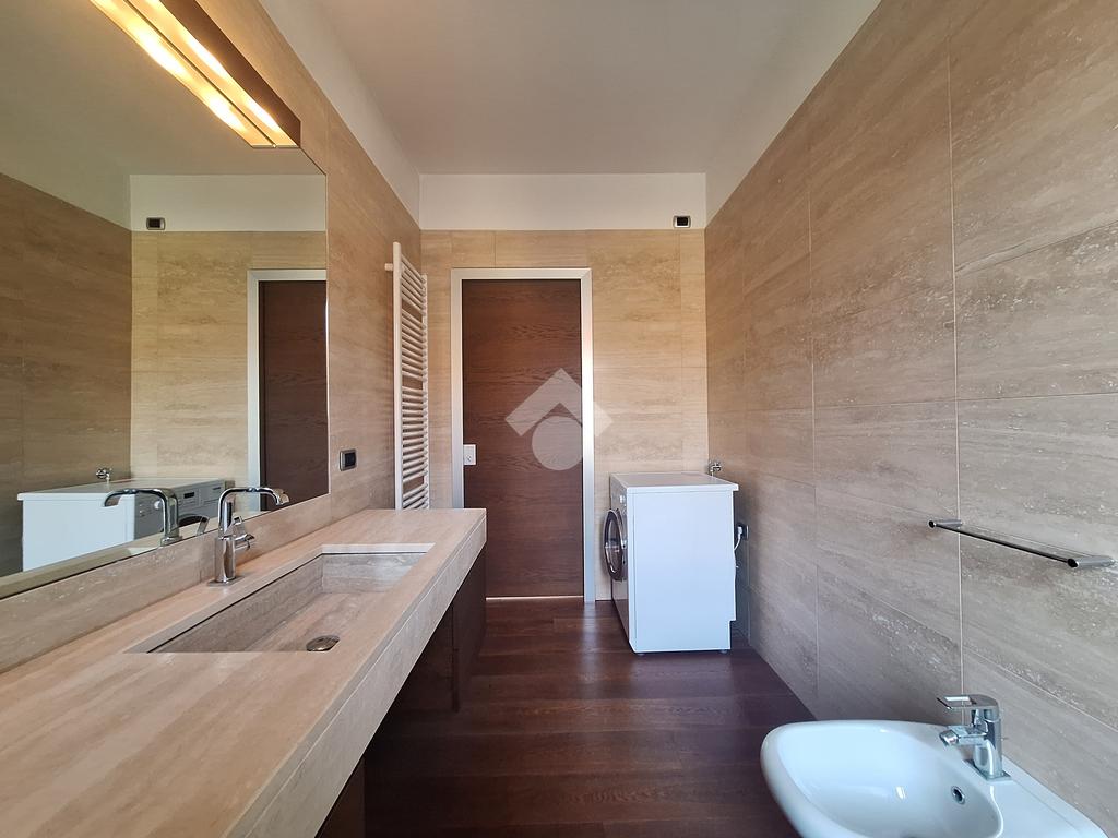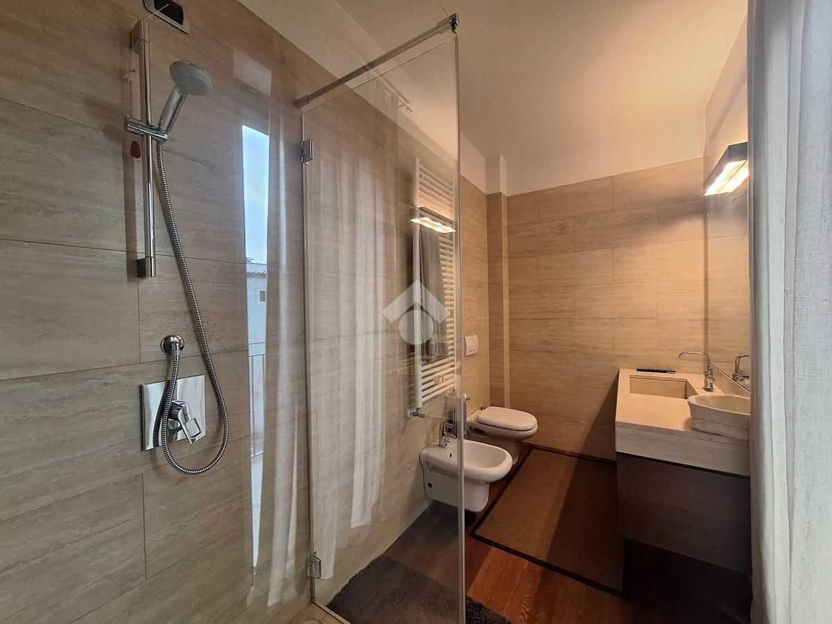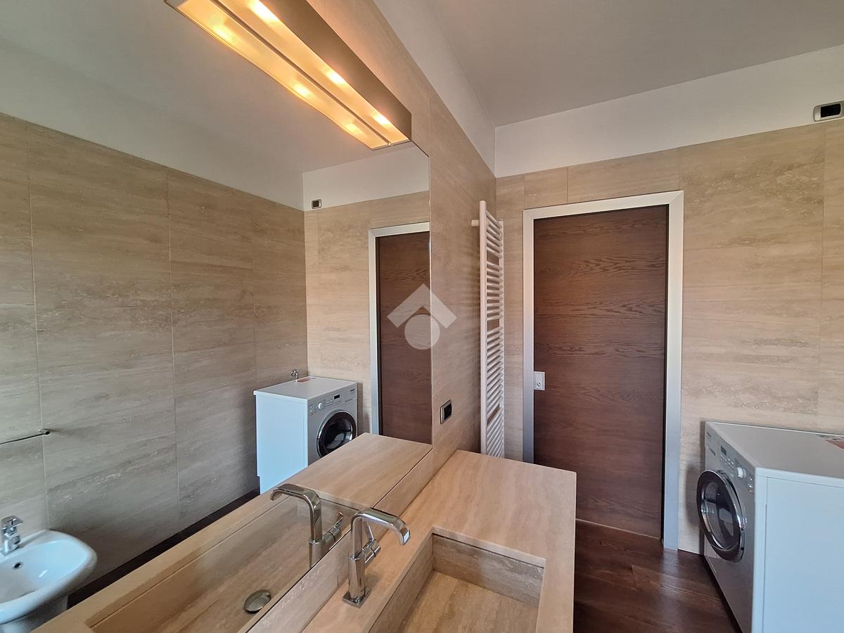 Le rifiniture eleganti interne come la pavimentazione in parquet rovere, tapparelle elettriche con comando centralizzato, i serramenti in doppio vetro, i bagni in marmo travertino con sanitari sospesi, porta blindata, impianto di allarme e la presenza di aria condizionata con pompa di calore canalizzata, assicurano comfort e qualità abitativa.