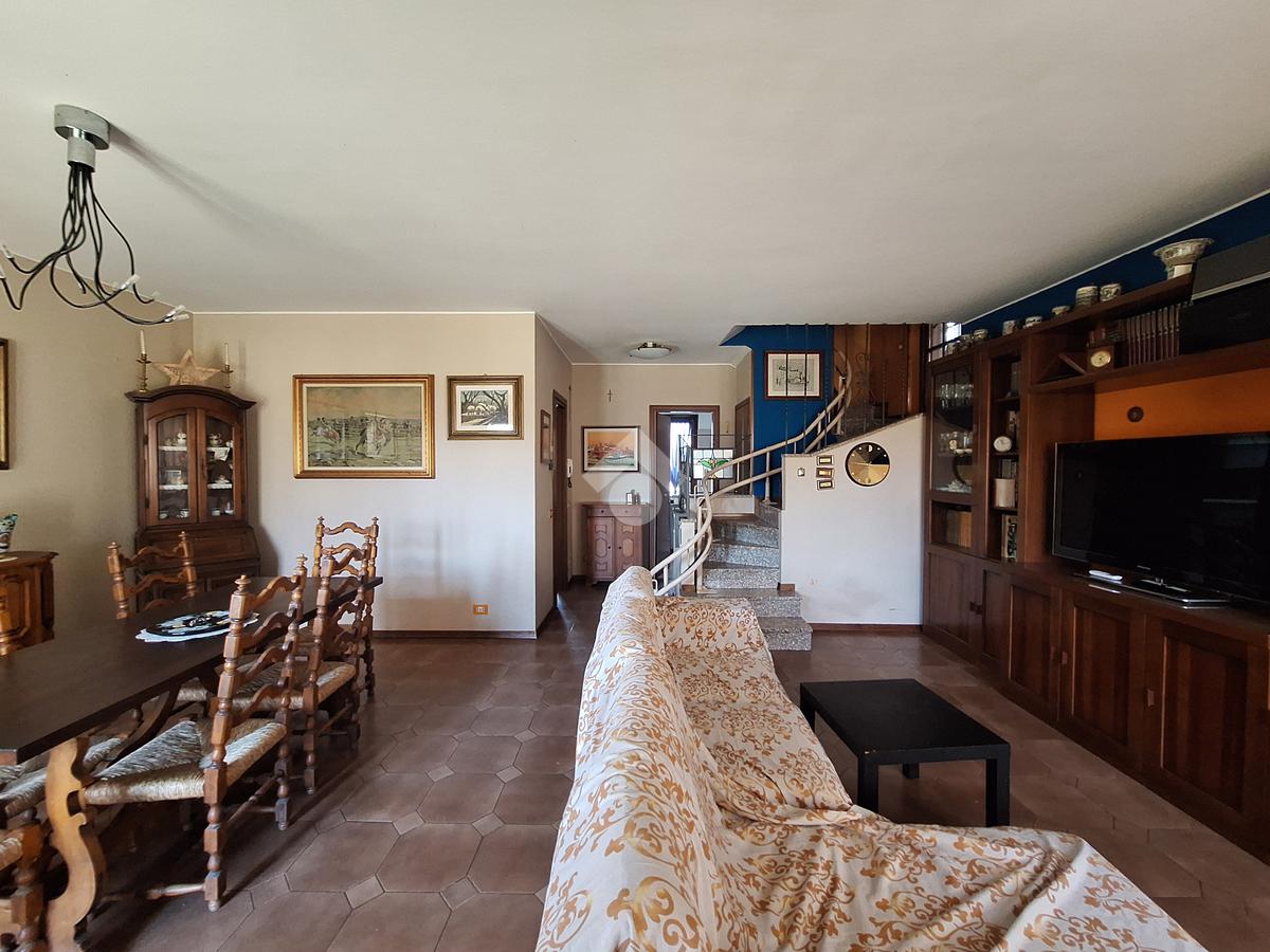 L’ingresso al piano rialzato conduce nell'ampio e luminoso soggiorno, ambiente accogliente e ideale per la vita quotidiana.