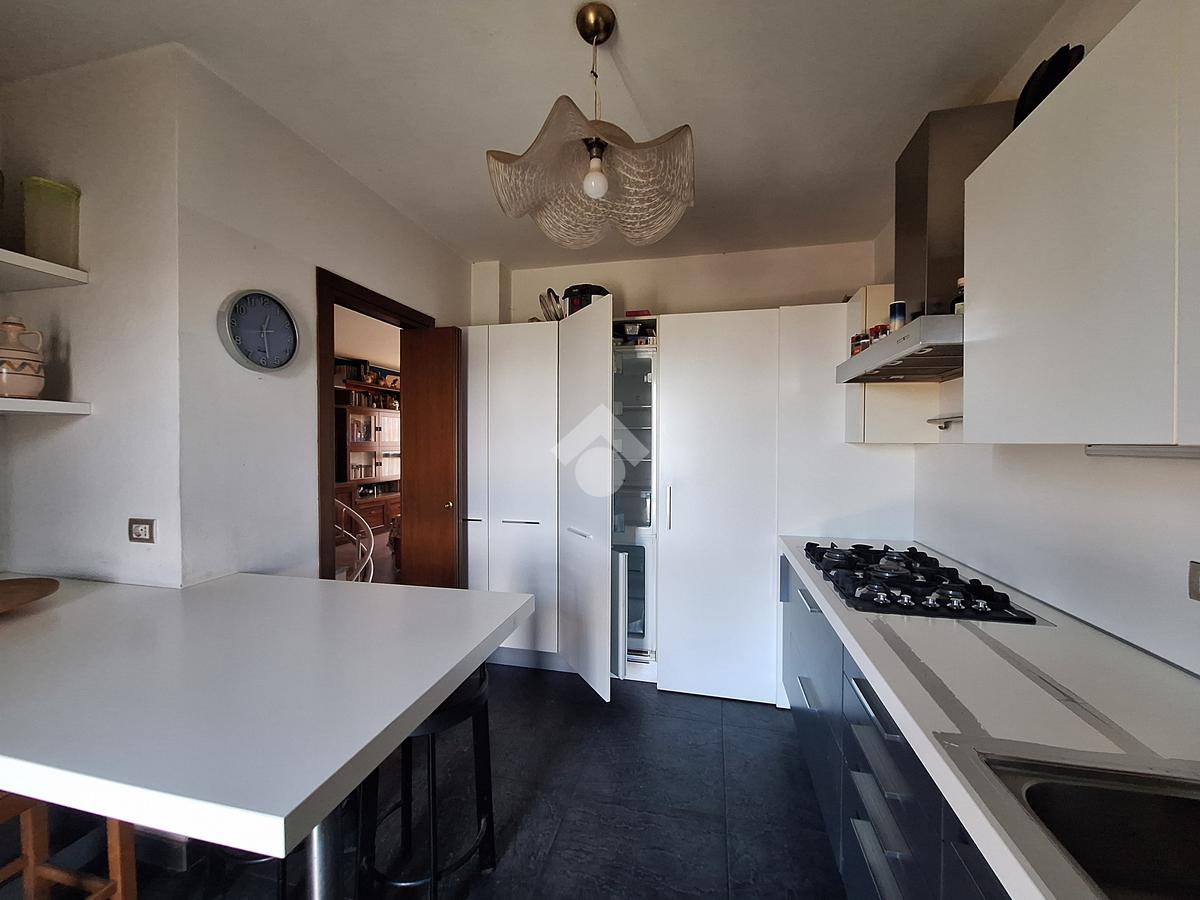 La cucina abitabile con dispensa dispone di uscita sul balconcino di servizio che collega direttamente al giardino retrostante, di generose dimensioni, perfetto per momenti all’aperto e convivialità.